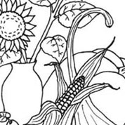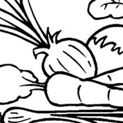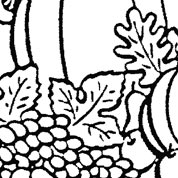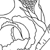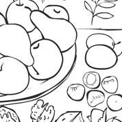 Rysunki do kolorowania - kukurydza, dynie, buraczki, fasolka, jabłka i gruszki, winogrona.