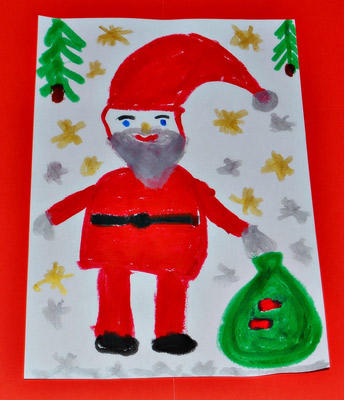 Mama napisała: Autorem pracy jest debiutujący przedszkolak o imieniu Julia,która 7.12.skończyła 4 latka :) Julia bardzo lubi malować, rysować, więc jeśli chodzi o pracę, to miała 100 pomysłów na jej wykonanie. Uwielbia Mikołaja, bo uważa,że jest bardzo dobry i kochany, a to dlatego bo On kocha wszystkie dzieci na całym świecie.