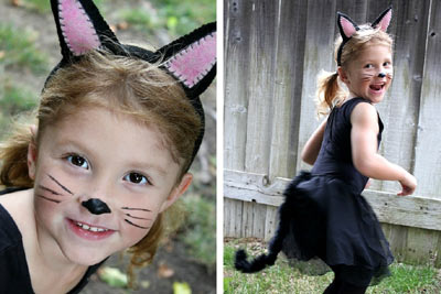 Podstawą jest czarny strój, spódnica, rajstopki, trykot lub podkoszulka. Do tego musimy zrobić kocie uszka i ogonek.