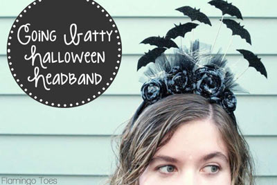 Potrzebne są: wąska opaska do włosów, kilka kawałków drutu, sztywny, czarny filc z brokatem, zwykły, czarny filc, kawałki czarnej i srebrnej tkaniny, czarna, satynowa wstążka, srebrna wstążka z frędzlami, czarny tiul, klej do tkanin. Pobierz SZABLON nietoperza. Jak zrobić kwiaty z materiału dowiesz się TUTAJ. Cała instrukcja wykonania opaski (wer. ang.) ze zdjęciami jest TUTAJ